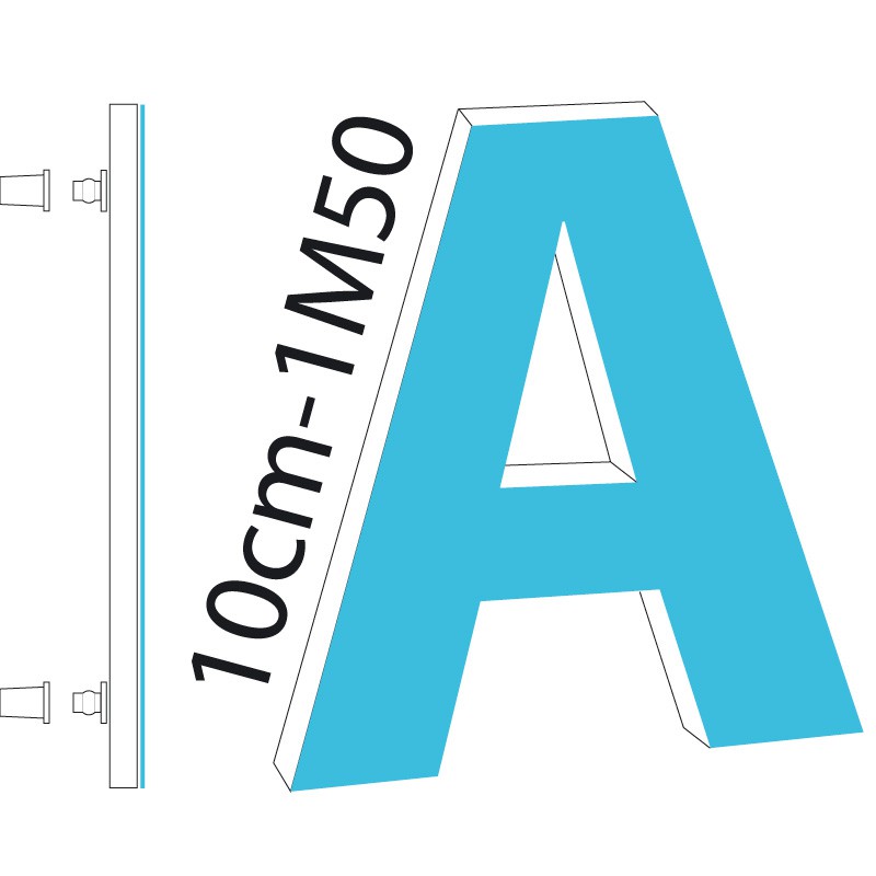 Hauteur des lettres de 10cm à 1M50.