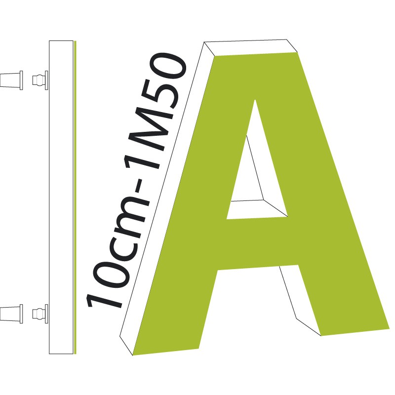 Hauteur des lettres de 10cm à 1M50.