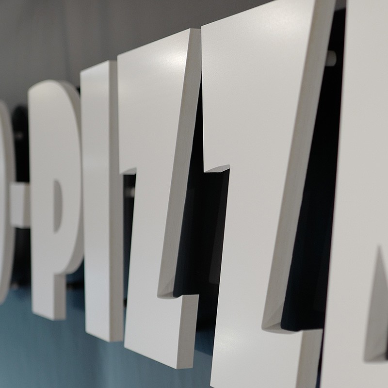 Lettres en PVC Komacel de 19mm d'épaisseur.
