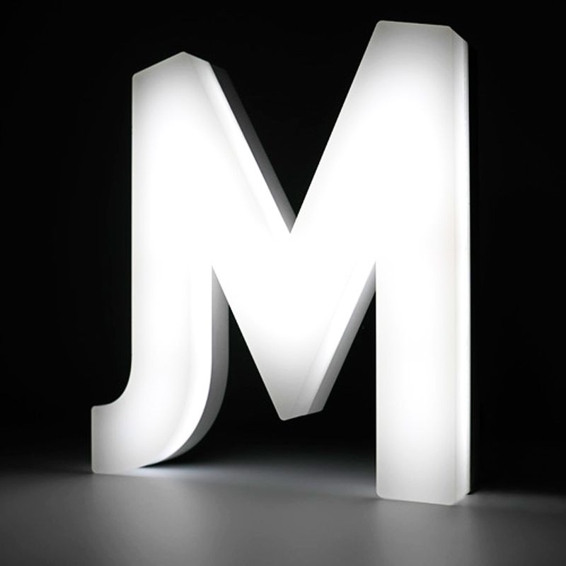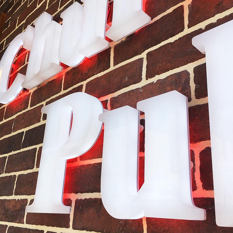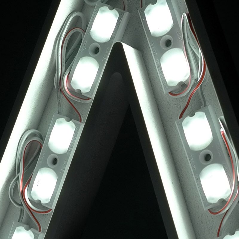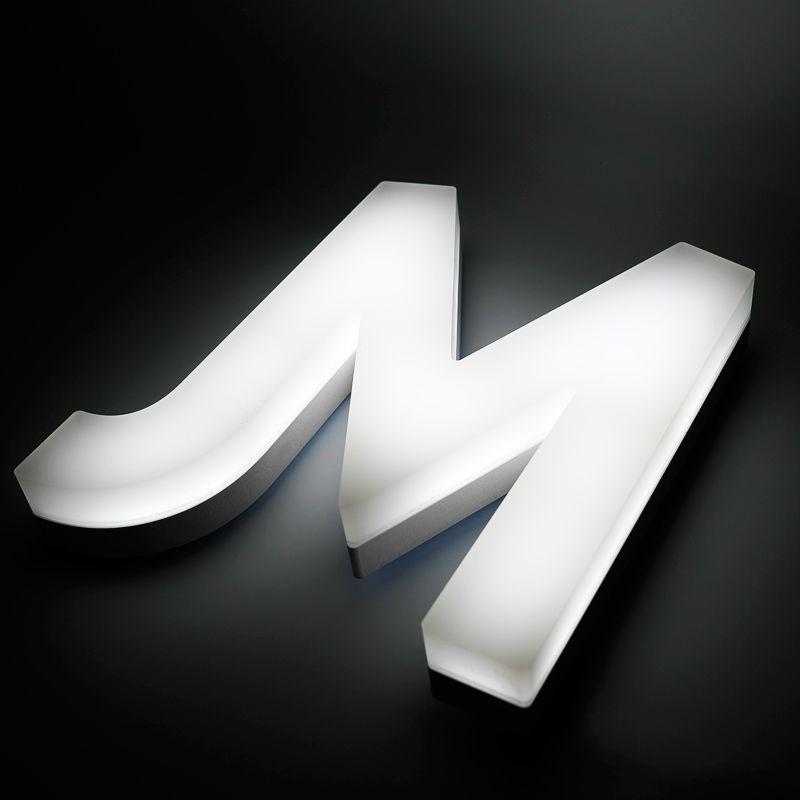 Lettres boîtiers lumineuses de 5cm d'épaisseur composées d'un corps en PVC 19mm et d'une face en Plexiglas coulé blanc diffusant 30mm.