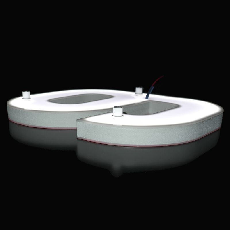 Finition Plexi blanc diffusant, avec ou sans film adhésif translucide couleur, avec chants blancs.