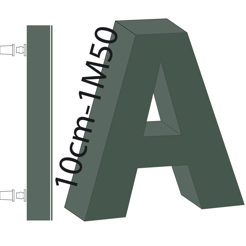Hauteur des lettres de 10cm à 1M50.