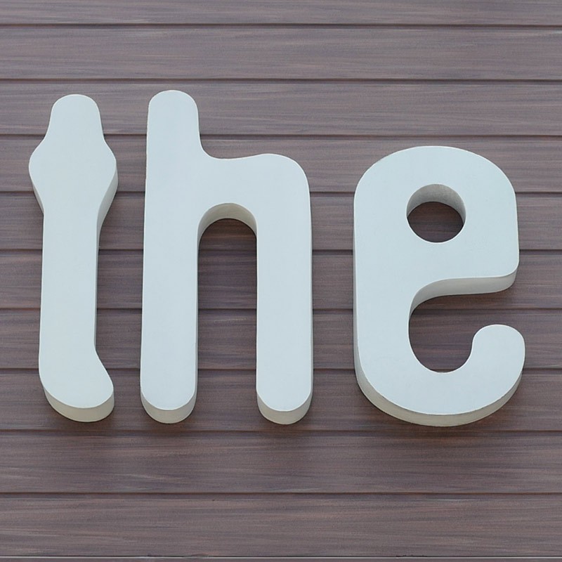 Lettres en PVC Komacel de 30mm d'épaisseur.