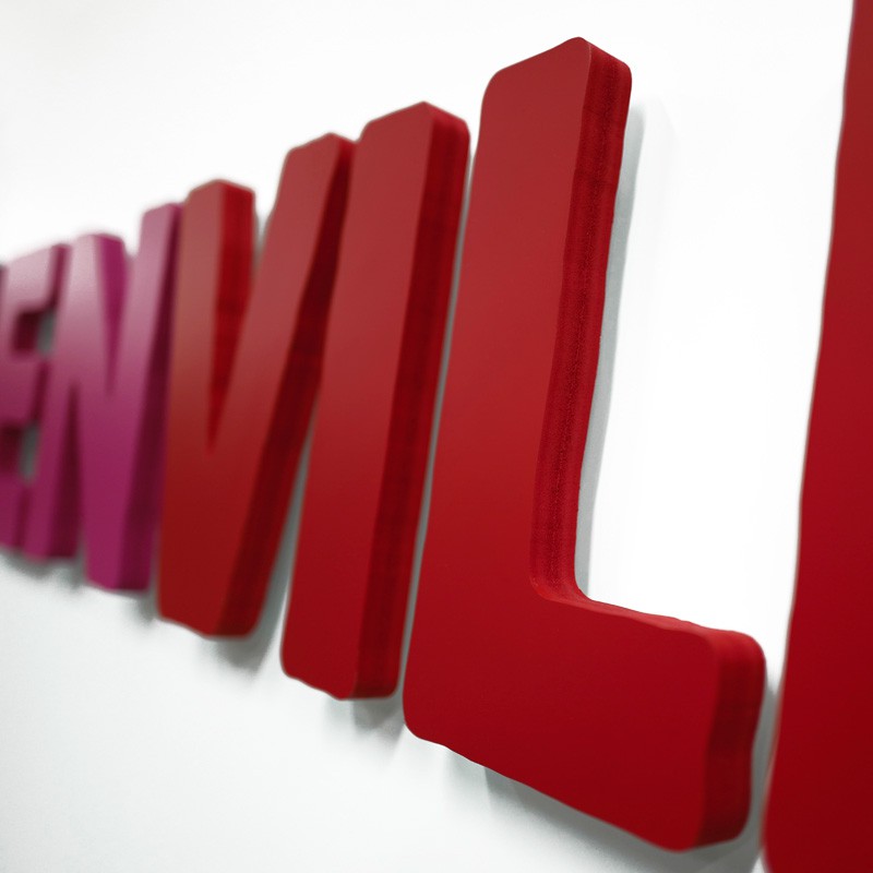 Lettres en PVC Komacel de 24mm d'épaisseur.