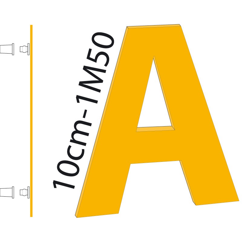 Hauteur des lettres de 10cm à 1M50.