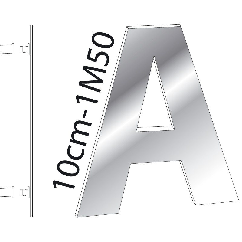 Hauteur des lettres de 10cm à 1M50.