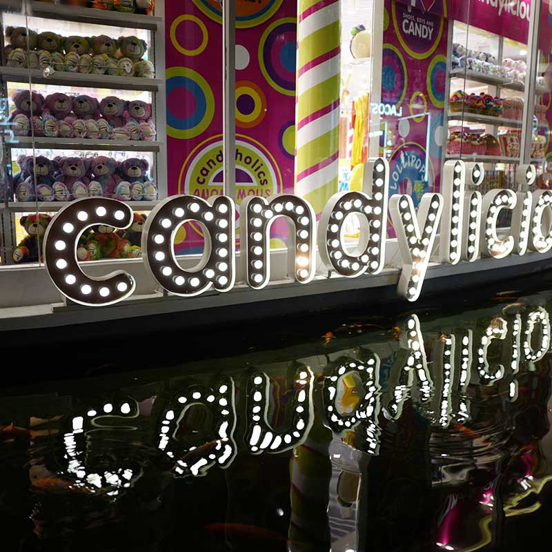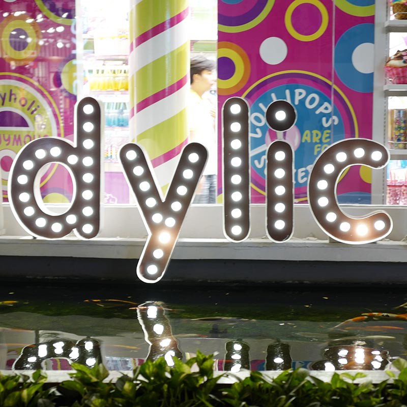 Lettres à LED apparentes en PVC Komacel de 19mm d'épaisseur.