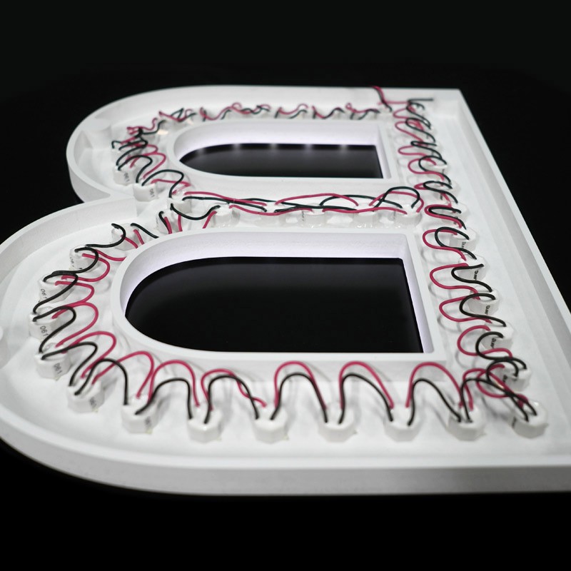 Lettres à LED apparentes en PVC Komacel de 19mm d'épaisseur.