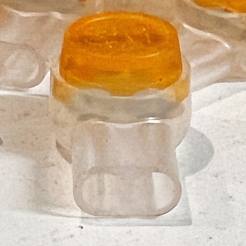 Contacts auto-dénudant (CAD). Pour connecter 2 câbles, il suffit d'enfoncer un fil dans chaque trou et de serrer le connecteur à l'aide d'une pince. La connexion se fait automatiquement et de manière étanche.